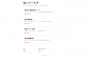 猫との暮らしに役立つ機能を継続的に追加予定です。既存機能の精度向上や使いやすさ改善に加え、飼い主さんが「毎日使える」実用ツール群として育てていきます。