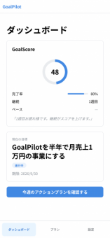 GoalPilotは「独立したいけど何から始めればいいかわからない」を解決するAIアクションプラン生成サービスです。